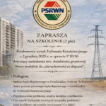 Szkolenie 31 stycznia 2026r. (sobota) w godzinach 9.30 – 13.00. „Przełomowy wyrok Trybunału Konstytucyjnego z 2 grudnia 2025 r. w sprawie P 10/16 dotyczący zasiedzenia tzw. służebności gruntowej. Nowe podejście do „nieruchomości ze słupami”. Czas trwania: 4 godziny edukacyjne (2 punkt szkolenie). Program: Przedstawienie problemu, analiza skutków......